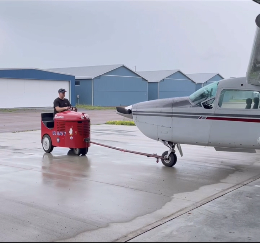 I find myself unable to effectively move my 337 by myself. My hangar requires a 180 degree "Y" turn to get out. The concrete is slightly slanted away from the hangar for drainage, but that little bit of incline/decline makes it hard to move the plane. I usually have my son with me (plays high school football) who makes it easy, but when I'm alone I could sure use some type of electric or gas tug. There are so many different designs on the market. What do you guys use?
