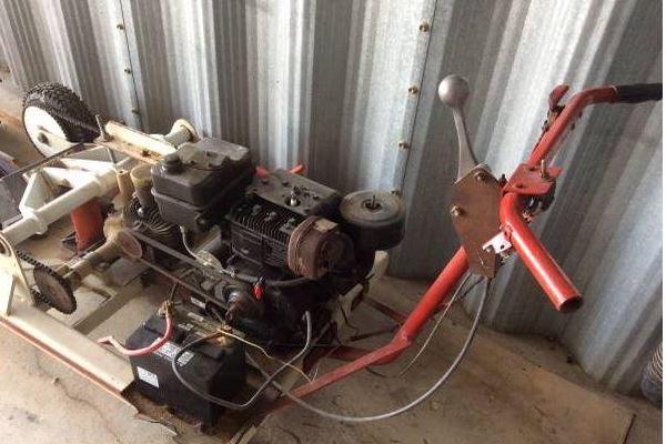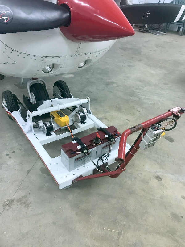 Powered Tractor for pulling industrial material carts that was converted to an aircraft tug. It was in miserable shape. I removed the motor, hydro-static drive and the hydraulic jack. Changed it over to two electric motors, speed controller, added an electric hydraulic jack to lift the nose wheel and added lights. Works great. Bought most of the components off of Amazon and eBay. The Concord batteries were not airworthy for aircraft, so I opened them up and refilled the distilled water, and reconditioned them using a HFT charger. I have added two of those chargers to the tug permanently to recharge the batteries after use.