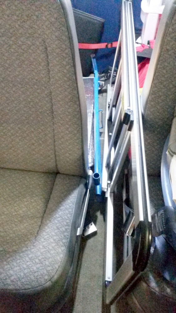 I looked around for a ladder and eventually bought a lightweight slim aluminium step ladder manufactured by Vulan Ladder model ES-3JKT. Working height is marked as 2ft-5.9in or 76cm. I bought it from Home Hardware in Canada, but I can't find it on-line. It looks similar to this one: