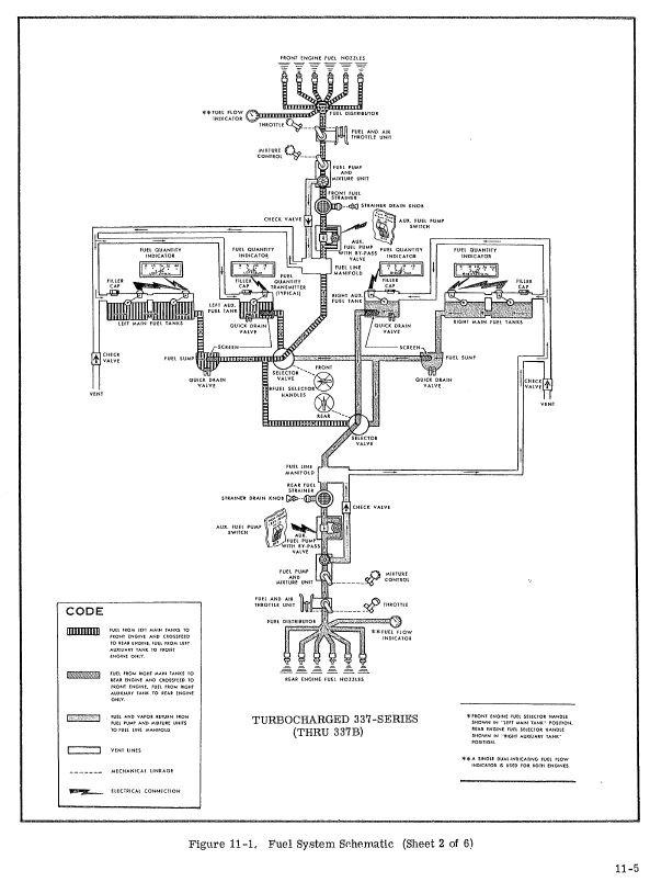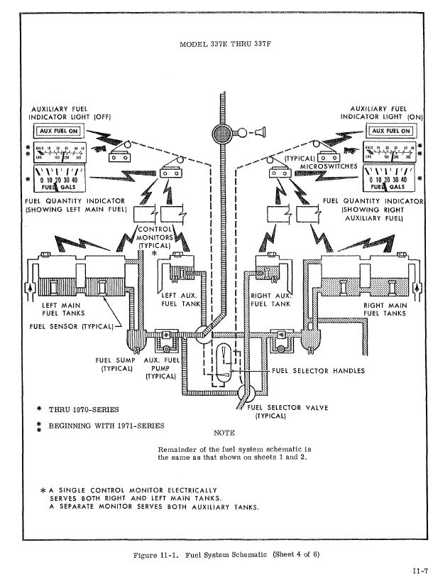 Also, I don't have the same return to the main from the aux tank that he describes. My 340 does - the aux tank empties in about 1/2 the time that the fuel burn would predict (the remainder is sent to the main tank, as in the NA 337s.) In my turbo yesterday, I ran my 18 gallon aux tank dry after (fuel flow x time) showed I'd burned 17.6 gallons of fuel. That's close enough for me.