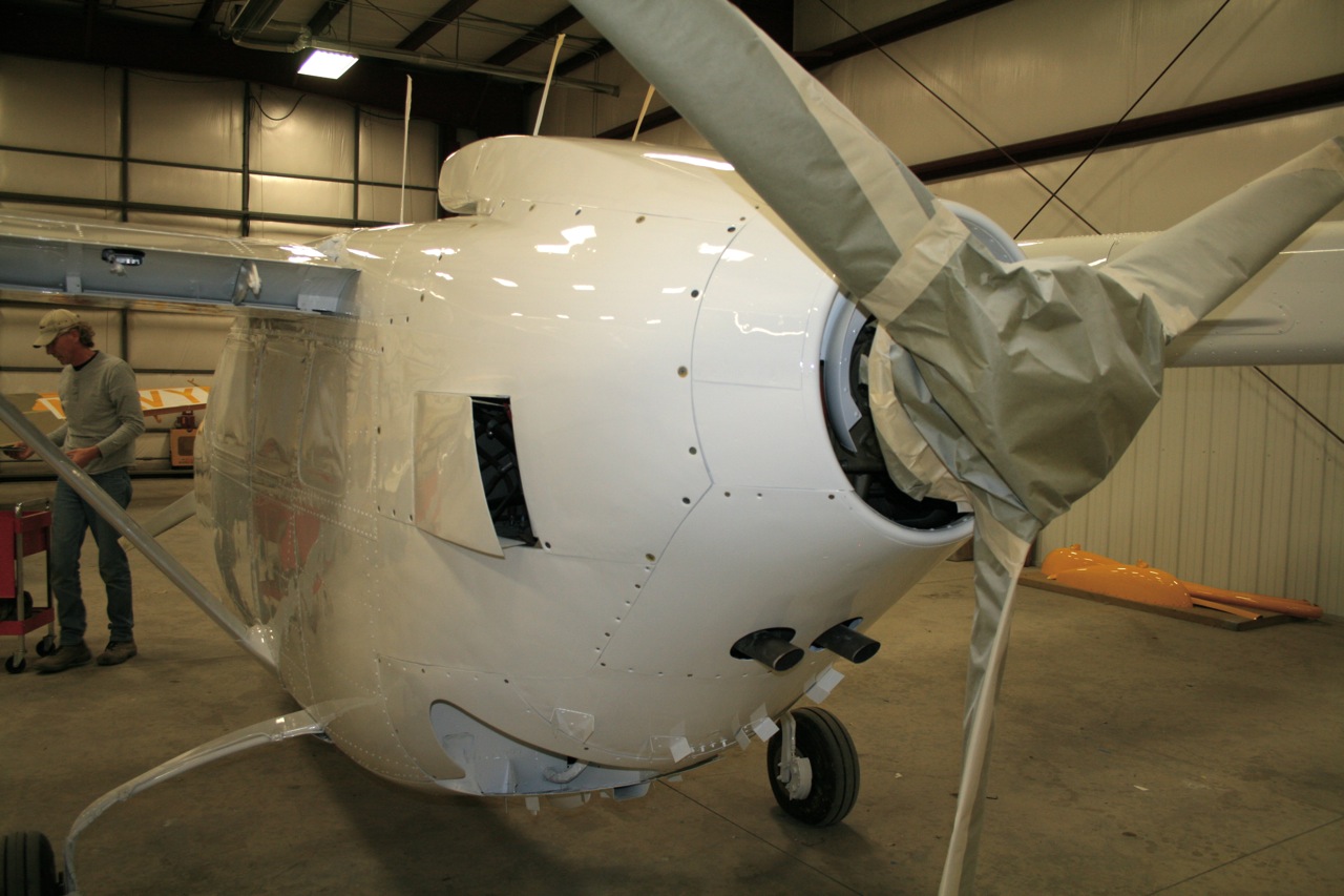 There were some good discussions with Danny about the type of paints that are out there. The reason that Cessna used Lacquer was for the fast drying and cheaper costs. There may be other reasons but lacquer will never look as shiny as the polyurethane does. Once everything has white on it the controls are reinstalled and then the design is added. The plan is to use stainless fasteners on all panels that require removal during an annual. This will keep the finish nice so that the paint is not chipped when the panels are removed. Well next trip it should start really looking like a new airplane.