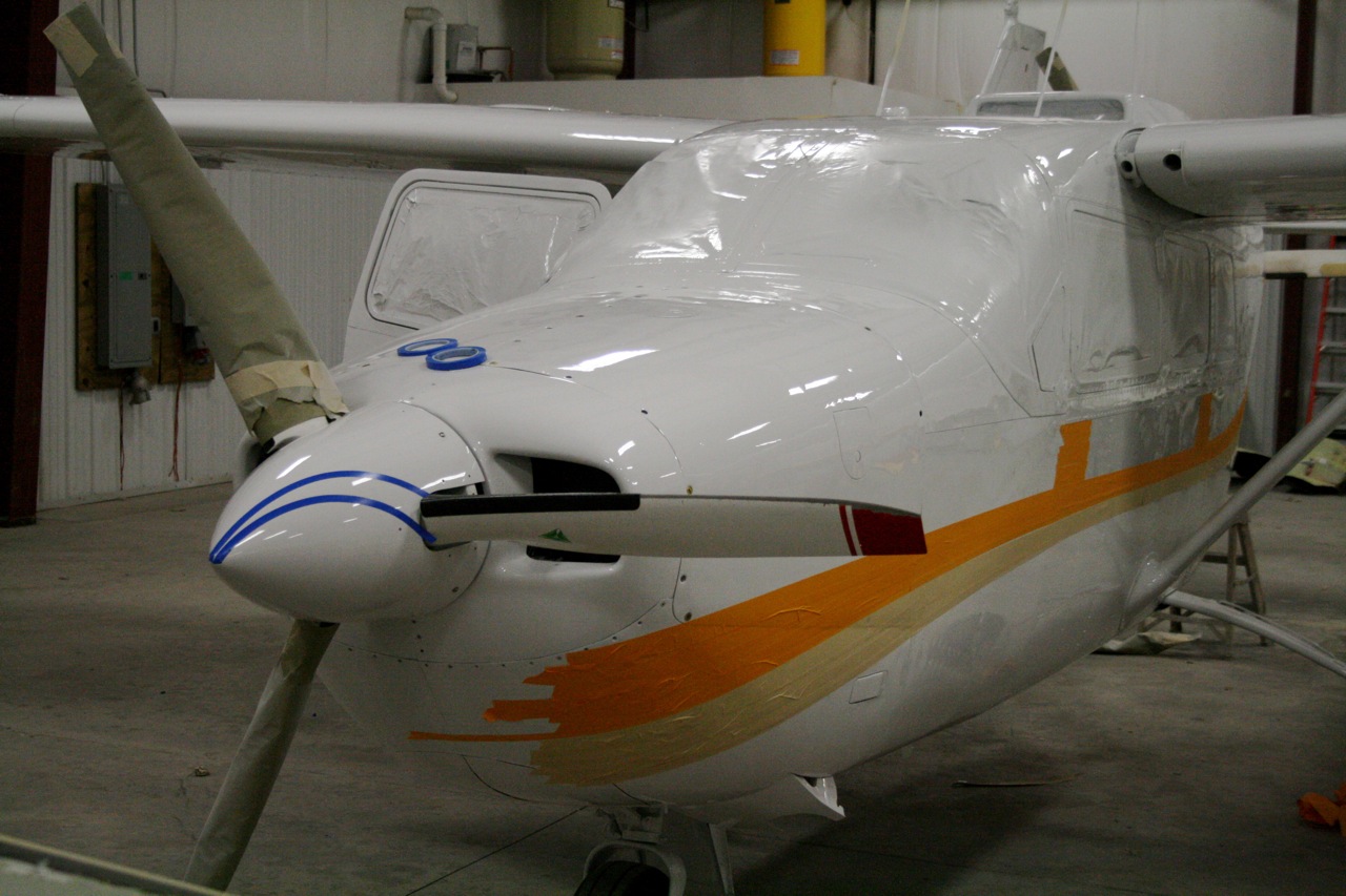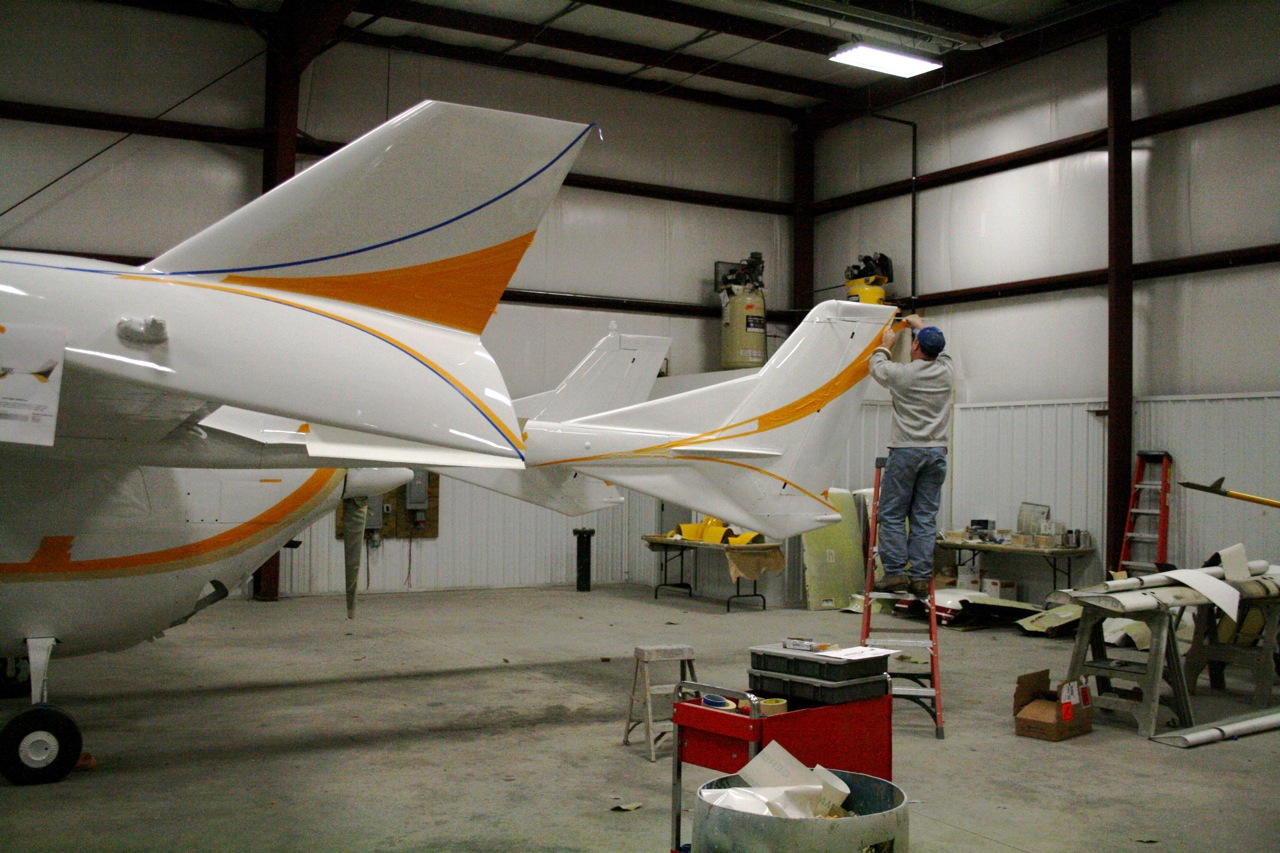 Dave will have the design on both sides by tomorrow some time and start painting Monday. They say I will be flying it home Thursday or Friday.