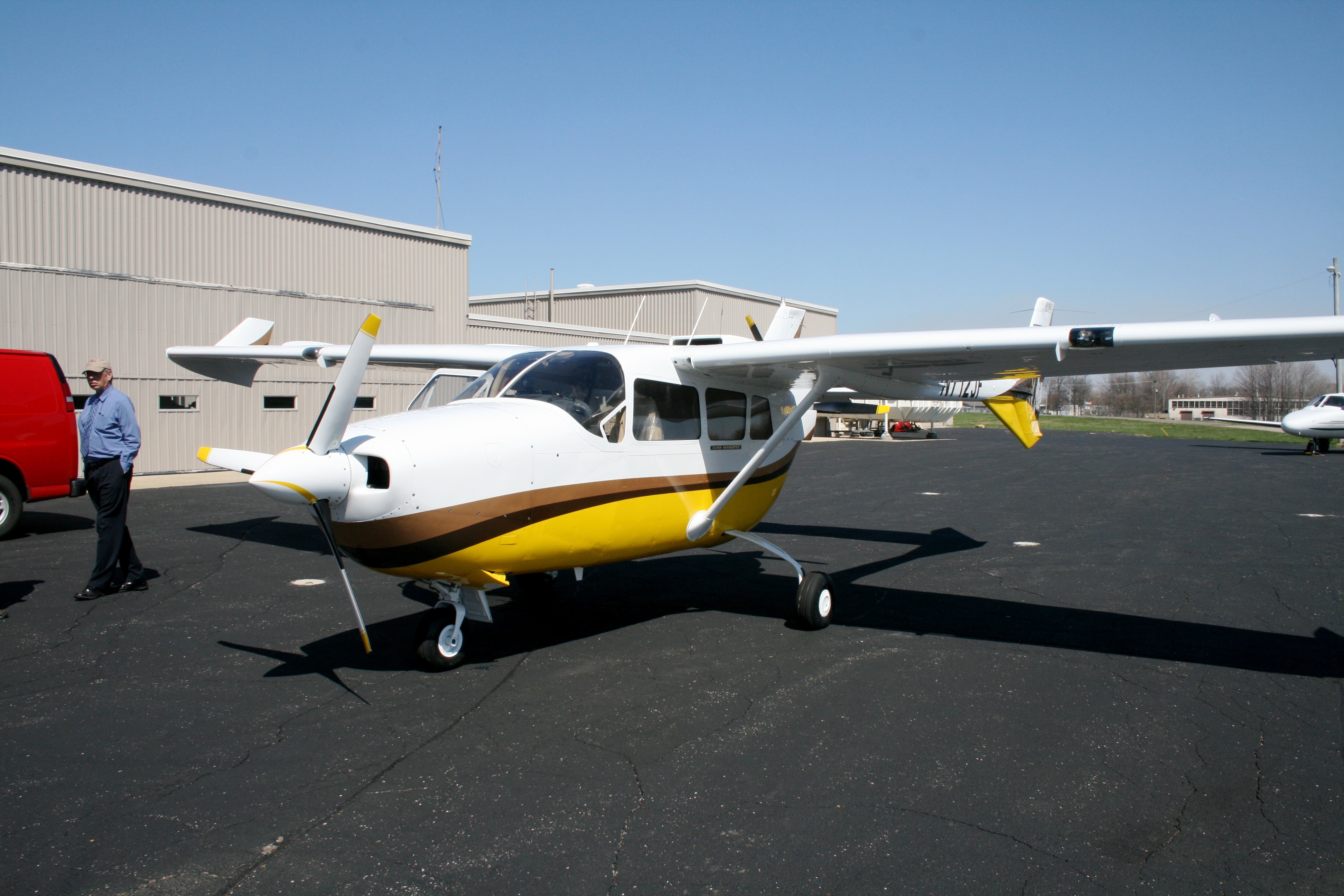 Off to Sturgis Aviation in the mighty burrow of Sturgis, Michigan. Here lies a paint shop that does not advertise (ever) and has a 2 to 3 month waiting list. The first time I met Danny was last October and told him then to put me on the list. He said based on the back log he had right then it could be February before there was an opening. Even thought my interior guru said that he would be done by the end of December, I told Danny that was just fine, pencil me in. At the time I made the visit, back in October, he was doing the paint on brand new Beech Hawkers from the factory, the customer that bought like 7 or so Hawkers did not want factory paint but was having Sturgis Aviation do all the paint on all the new Hawkers. That was very impressive but then Danny said that he had never painted a Skymaster. Well then, let's get you started on new territory. BTW, the last issue of Sport from EAA with the P-38 "Rough Stuff" on the cover, yep Danny painted it. In fact he has a number of planes that have won awards at OSH. We are going to try it with a Skymaster this year. Hope to see some of you 337 enthusiast there too.