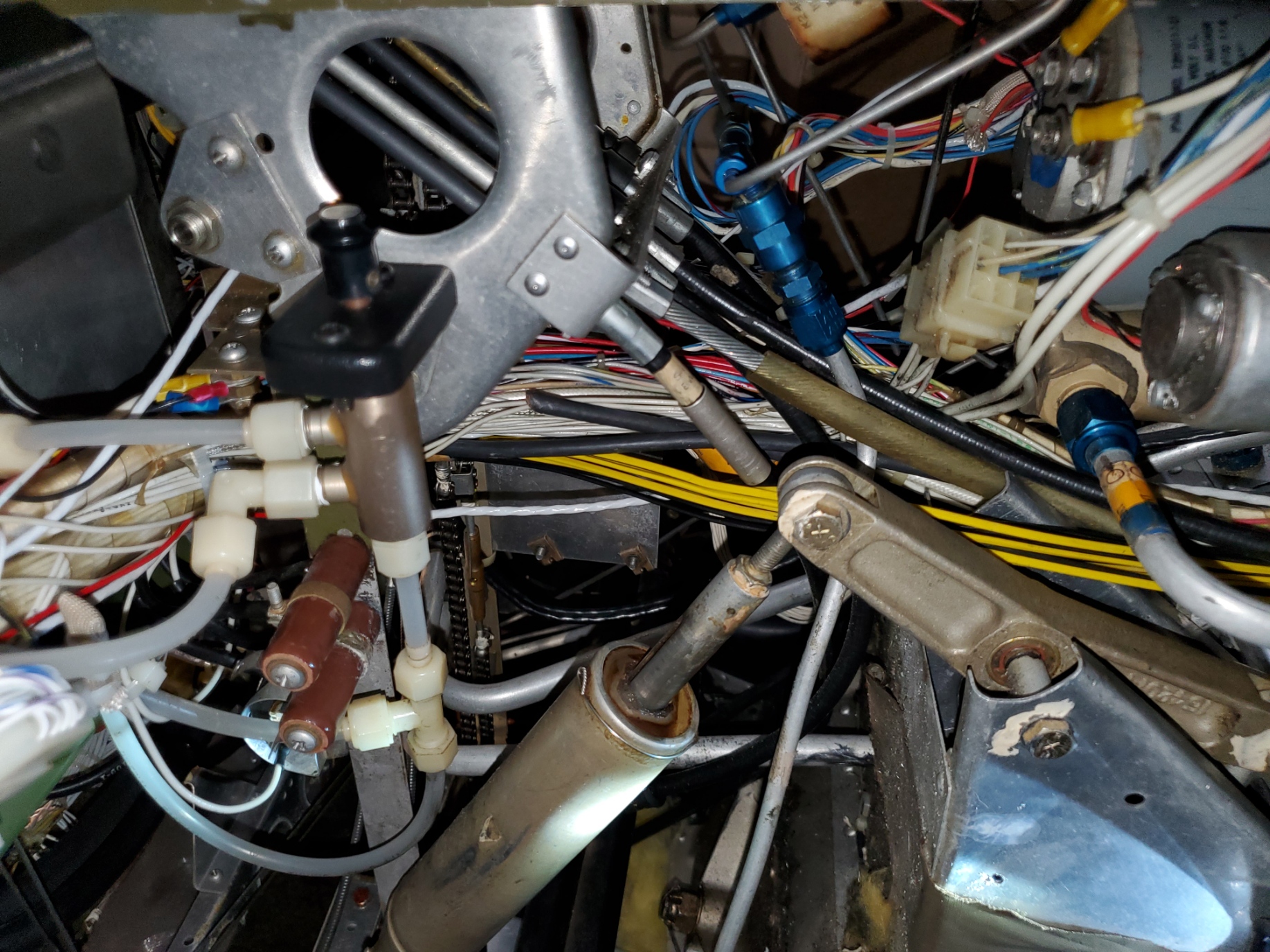 I’ve replaced the old and unhealthy-looking diodes, relays, capacitors and resistors in the front firewall circuit board. Replaced warning annunciator assembly. Replaced some very shady and badly corroded contractors with Sky-tec (battery, starters, ground power). Alternators turned by hand meet resistance in less than 1/8 turn. When running front engine only, was able to adjust Original Voltage regulator to 27.9v. Rear DGR5-1 VR appears to run at 26.5v. Together: 26.5v. Select either offline after both online, you get 26.5v. New battery voltage is 25.4, and DIS light comes on at 25.9v. All annunciations appear normal. Ammeter still intermittently waves slightly and rythymically Even when beacon off. Have not touched or adjusted overvolt/undervolt circuitry. There is no battery pack in the aircraft so I’ve labeled the ALT RESTART switch as INOP. I’ll try to remember the AC volt test next session. Thanks for your thoughts. |
