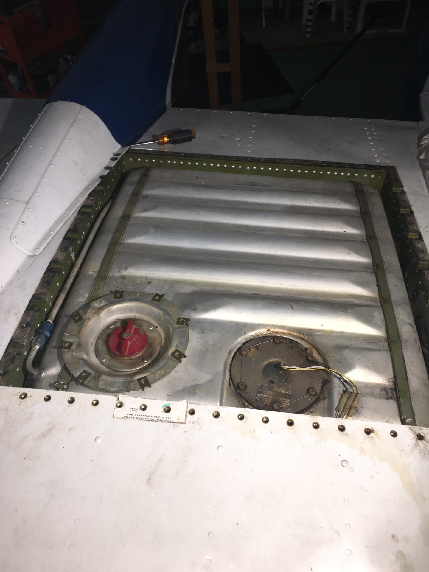 When I put more than 12 gallons of fuel in my right aux tank it leaks. I have removed all the screws in the aux tank cover but still cannot remove the cover. This is a 1966 A model 337. There is a boom fairing that covers the outboard rear corner of the cover. The fairing is riveted in place so is not easy to remove. I am wondering if there is another screw under the fairing holding the rear outboard corner of the cover? Anyone have experience with this issue?