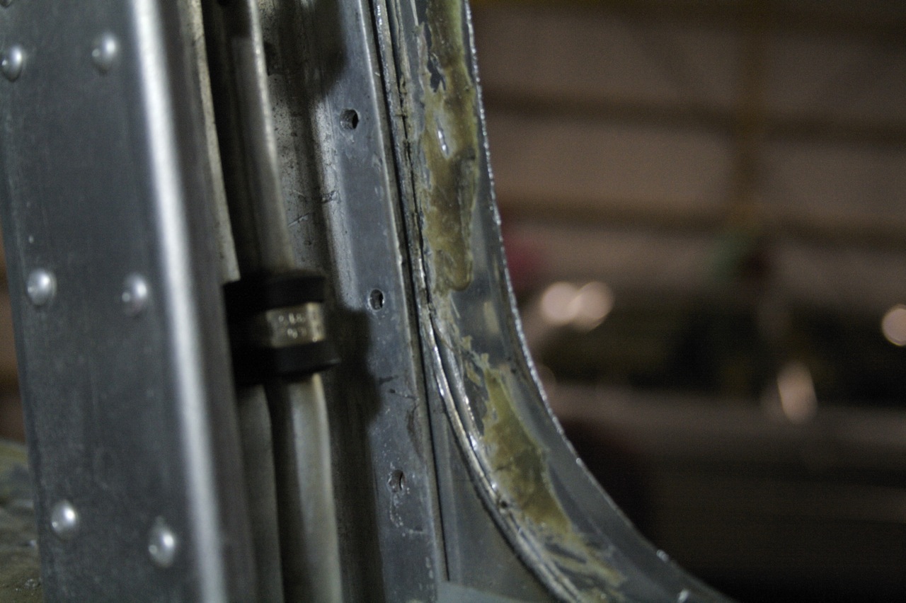 Also Jeff indicated that I should remove the black patches that are glued to the skin of the interior of the cabin. There were a couple already missing and some corrosion was apparent on the skin where the lead patch was. I removed a couple more but did not find corrosion under them. Some of them seem to be really attached strong and I had a hard time even forcing the putty knife under them. Should I still remove them all? Even if there is no corrosion? I haven't looked under the floor yet. I assume there are some of these down there too?