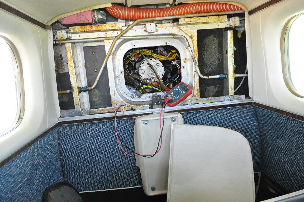 My wires show in the center of the door, right across the piano hinge, then snake down inside the upper door trim past the door lock to the bulb holder. I wired both the overhead MAP light and the courtesy door light to the same power wire from the fuse holder on the firewall. That way I can turn on the map light to see the panel during preflight at night, since the dome light didn’t quite cut it.