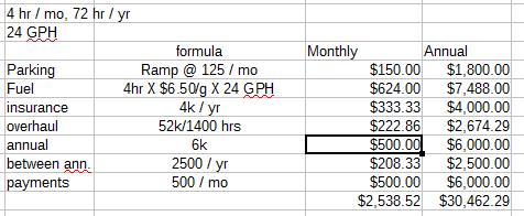 Hi all. I'm prospecting for a Skymaster and have put together a spreadsheet of operating (really, owning) costs (snippet in attachment). Was wondering if anyone would care to comment on the reality of these numbers for 2015/2016. The "payments" are based on a roughly 90k aircraft (details were determined by loan calc, so assume the payment is correct). I also raised the tie-down to $150, but forgot to note that at the top left (where it still says $125). I've also assumed the 185-190Kt speeds that I've seen others recall as taking 24ish gph for the turbo. Perhaps then my annual and O/H is too conservative a budget?