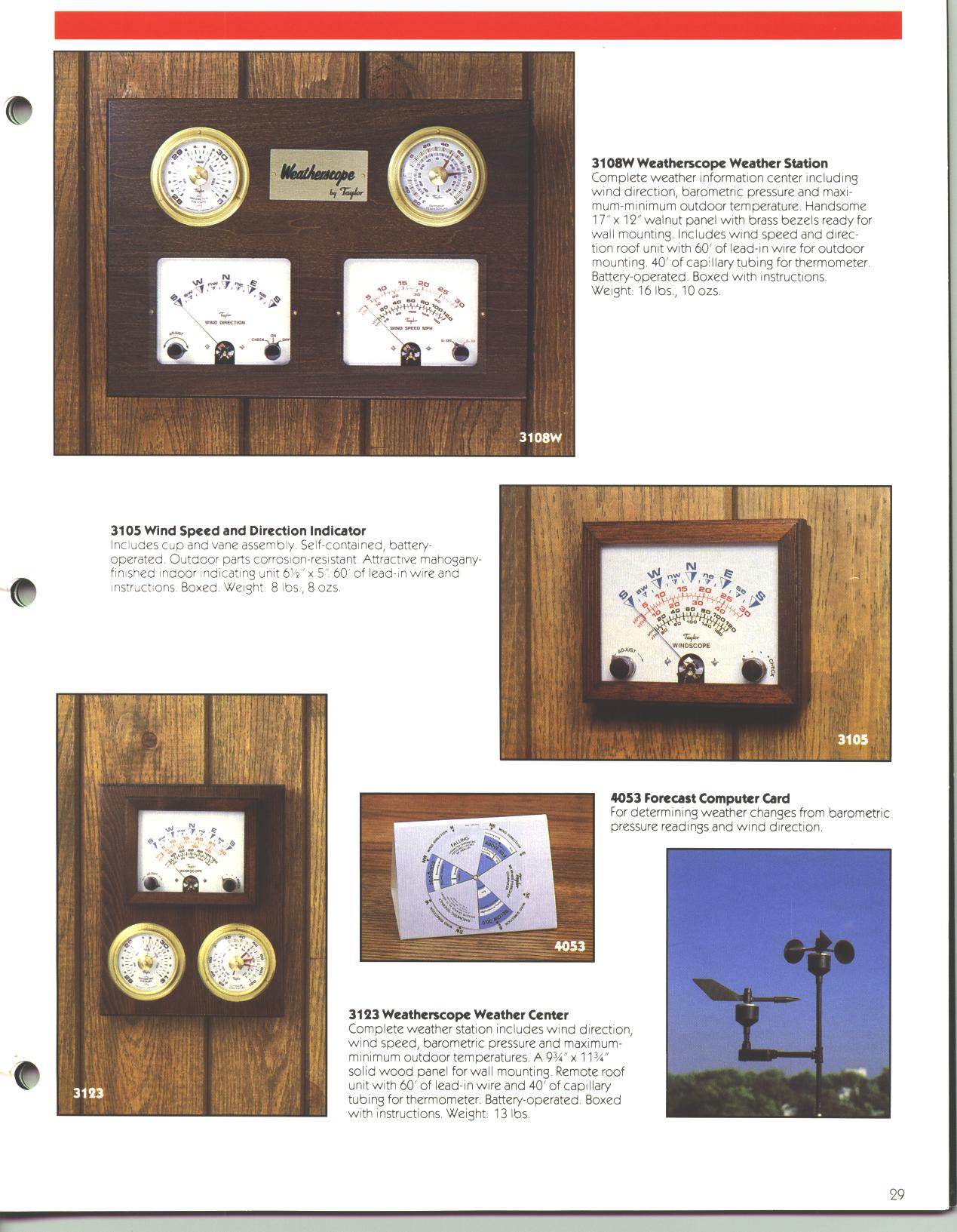 If any of you might be interested in a VERY nice windspeed/direction set that Taylor Instrument Company manufactured a couple of years back, I've managed to secure the last remaining 22-units that Taylor has in inventory at the factory. These are brand-new, factory sealed in the box units. These are by far, the best built anemometer/wind vane units I've come across, and the inside indicator unit is mounted in a substantial block of attractive cherry wood. The windspeed mode has two scales, 0 to 30 MPH and 0 to 120 MPH, and is also calibrated in Kilometers (KPH). They're completely self-contained, using one D-cell battery for the wind direction mode only, and they come with 60' feet of pre-wired cable, ready to be installed on a mast. The price per set is $499 + shipping. See the photo attachment below for the Model 3105 for details. The sending units are pictured in the lower right corner. These units last sold new for $875. Even though they're discontinued, they still come with full factory warranty. If you've ever wanted to really know what the winds are doing, this is probably the finest unit ever manufactured. And what a unique Christmas present for we pilots! If you're interested in one of these, e-mail me at SkyKing@Wolfenet.Com. These are the last of these units anywhere to be found.