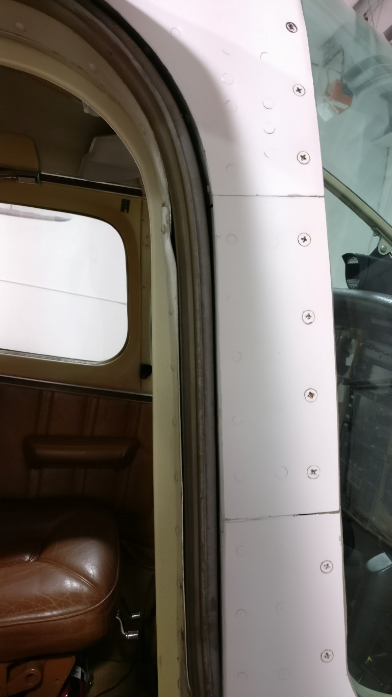 The airplane doors had been leaking for a long time and the previous owners had tried lots of things to seal them, including domestic house weather-stripping, and masking tape! Several hours of work was required to remove the old seal and clean the old adhesive from the door. The new seals weren't cheap. They were easy to install, but after installation, some areas of the door, especially the corners, continued to leak air. Shortly after installation on the baggage door I noticed the seal was abraded from vibration, even on protected areas next to the hinge.