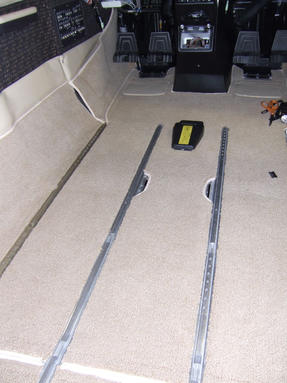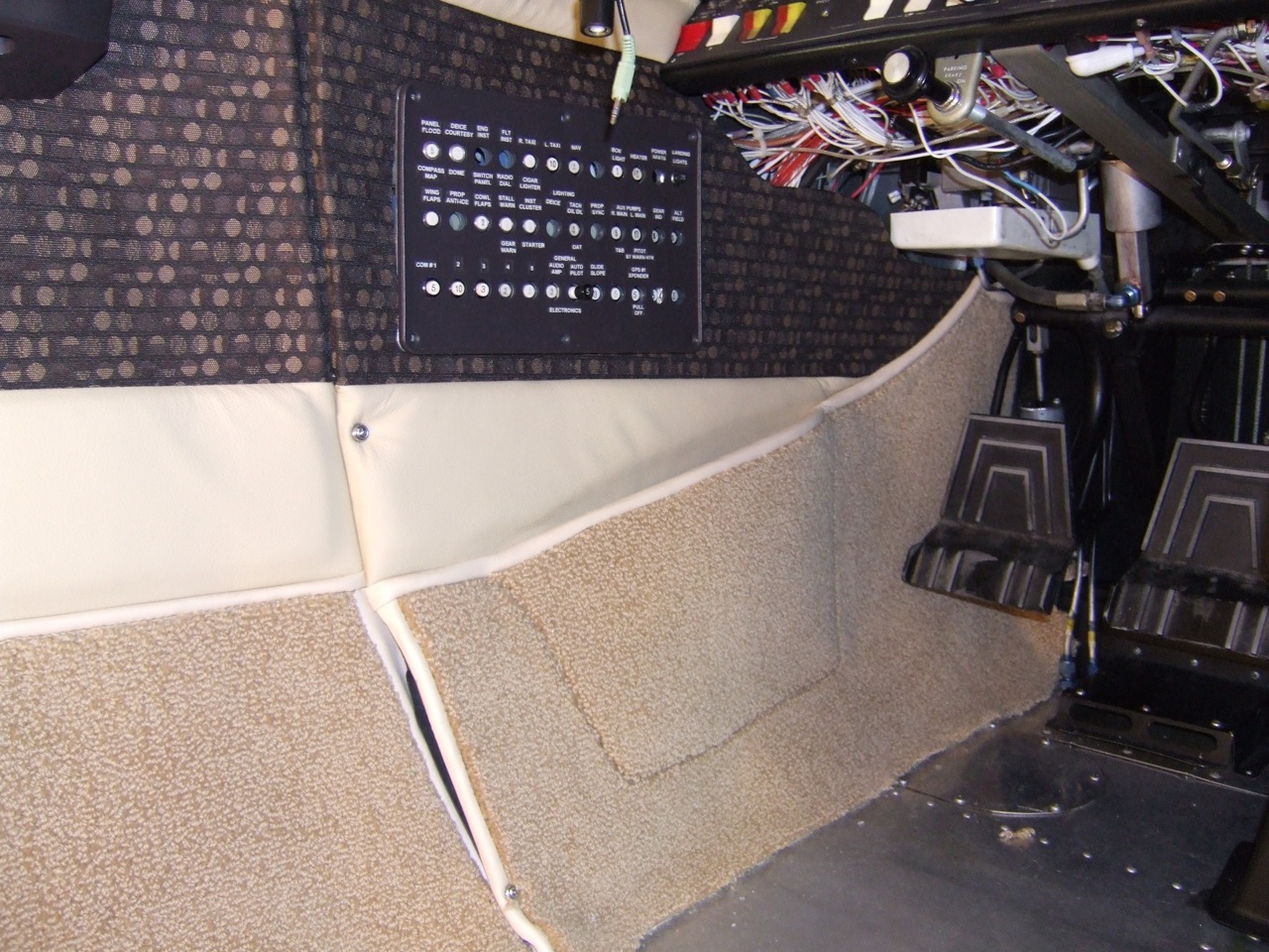 Interior progress is still progressing. My interior guys continue to give me finish dates each week but they run into roadblocks that never allow the date to be correct. I still haven't seen the seats but maybe today!!! Some of the roadblocks have been the fault of others, like all of a sudden I decided that we need to replace the map light switch on the left side column by the pilot. My interior guys tried to make it work but it looks like the best avenue is replacement. So now they couldn't finish that trim work around the emergency exit window until I got a new switch. Another order from Cessnaparts.com and the switches are on the way. They were in stock at $6.17 each. When they arrived they are a little different than original but they were direct from Cessna. Actually different in a better way. As of last Saturday the new switch was installed by my qualified IA. Also the new Rosen visors had to be mounted, and after reading their procedure we realized that the visors mount to the Royalite trim over the pilots. At first this was quite a surprise, and we scratched our heads on this one. Rosen's design for the mounting of these units in a Skymaster is a little Mickey Mouse for a better term. I called Rosen and they were no help at all. On top of that their instruction sheet was not clear enough to see the photos of the figures they kept referencing in the procedure. They said that they didn't have the original photos anymore and were sorry they could not help me. Well, I understood how they wanted them to mount so through a process of elimination we got the visors mounted. Has anyone ever installed these? Interesting but once I got the up, WOW these are going to be nice. Oh and they do have an STC for the Skymaster so all the paperwork can be legalized. Now we just need to get the interior guys back.