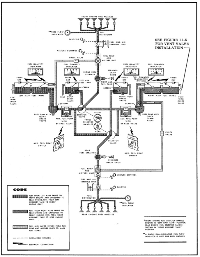 My 1973 G model has the tanks in each wing all interconnected and under normal operations there is no fuel management. The right wing feeds the rear engine and the left wing feeds the front engine. It is my personal procedure before engine start up to "exercise" the fuel selectors by rotating them throughout their full range of positions because otherwise they would never move. I also periodically cross-feed on the ground (right wing to front engine and left wing to rear engine) just to make sure the system works as designed and the engines continue to run in the cross-feed configuration. The only other consideration with this fuel system is that because the tanks are interconnected with relatively small (though adequate) hoses, these models must be fueled SLOWLY!!! Most fuel pumps pump fuel much faster then the tanks can accept it. As a result the outboard most tank, which has the fuel port, fills quickly and gives the appearance that the system is full. IT WON'T BE! If you sit and watch for a few minutes, you can watch the level in the outer most tank dwindle down as the fuel gradually makes its way to the inboard tanks. Ed |