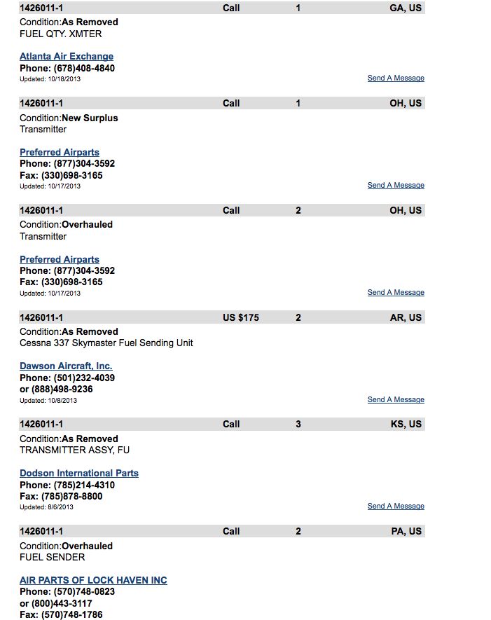 If you're still looking fuel sending units, I bought two Aux sending units for $50 each. New surplus! These are wrapped in original wrapping and are in original boxes. This guy ONLY has the Aux! BUT at $50 each it will help in the overall costs. Just check E-Bay under "Skymaster". BILLS |