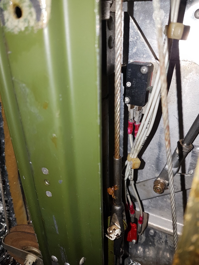 I had very similar issues with my flaps as the original post. Replaced the flap control cable with a new unit from Don Nieser. Pulled my old one out and lay it on the hangar floor, it felt smooth as silk. However, as soon as I put the bends back in it, i felt it immediately bind up. For the price of these things, its not worth messing with it to try and re-lube the cable and carry on. They do run through a weird series of bends to get from the front of the airplane to the back. Its a fairly straightforward job, but does require the removal of about 90% of the interior - get ready to spend some time laying on your back under the instrument panel. Only real gotcha is the rigging. Once you get the approximate distance of the rod ends sorted out, there is a slot in the flap-motor end of the cable that allows you to change the throw of the bellcrank. Takes a bit of trial and error to get the right amount of travel to allow the flaps to come full up. Now she works like a charm, and retracts fully into the wing. I was actually shocked at how much... I rekon she'll be 5 knts faster! Pics attached: -The weird ass routing in the roof -Up/down limit microswitches on the flap jackshaft. Cable attaches on the right side of pic, can see the bellcrank slot. -Retracts nice and tight for MOAR SPEEEEEEEED!! |