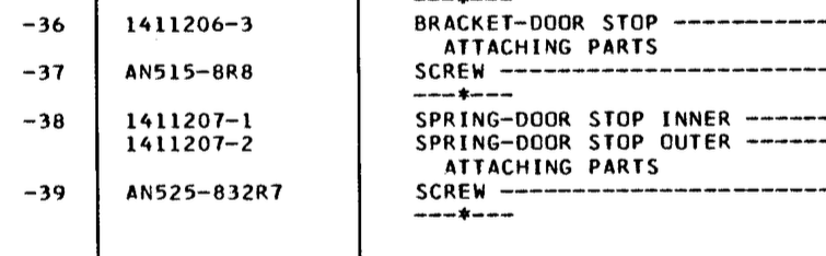 If you are have trouble making your cabin door stay open, the problem is usually the parts are worn out. we have all new parts for replacement; arm 1411206-2, spacers 1411206-1, screws & nuts, upper bracket 1411206-4, lower bracket 1411206-5, springs 1411207-1 & 1411207-2. Call Don Nieser 405-503-4686 or e-mail: nieser.02.337parts@juno.com.