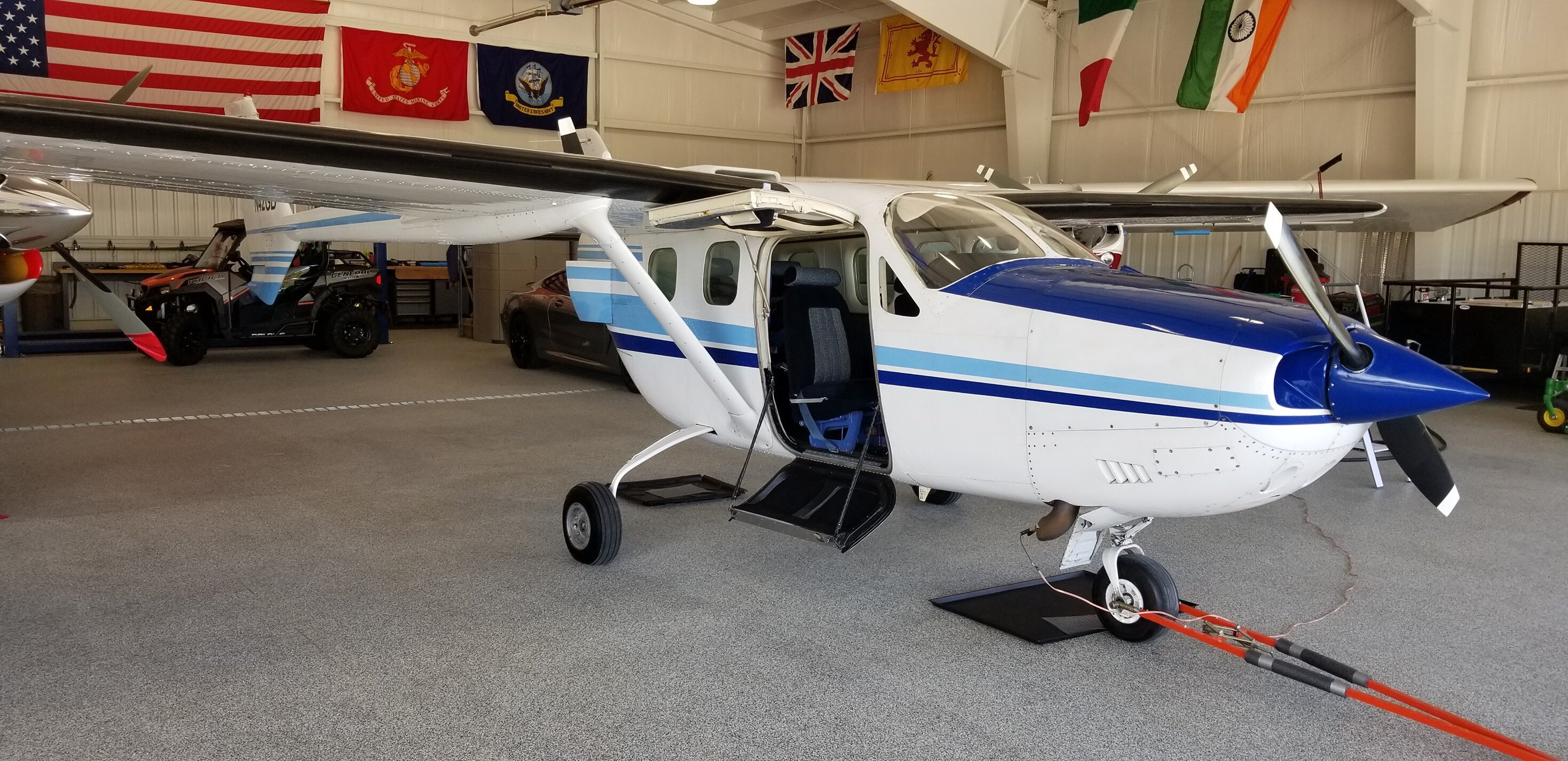The Pressurized Skymaster II has boots (in good condition) and a hot prop on the front, but no hot prop on the rear. I guess the exhaust naturally keeps the ice off the rear prop? It has a provision for a hot plate, but none was included with the sale. Anybody have one lying around?