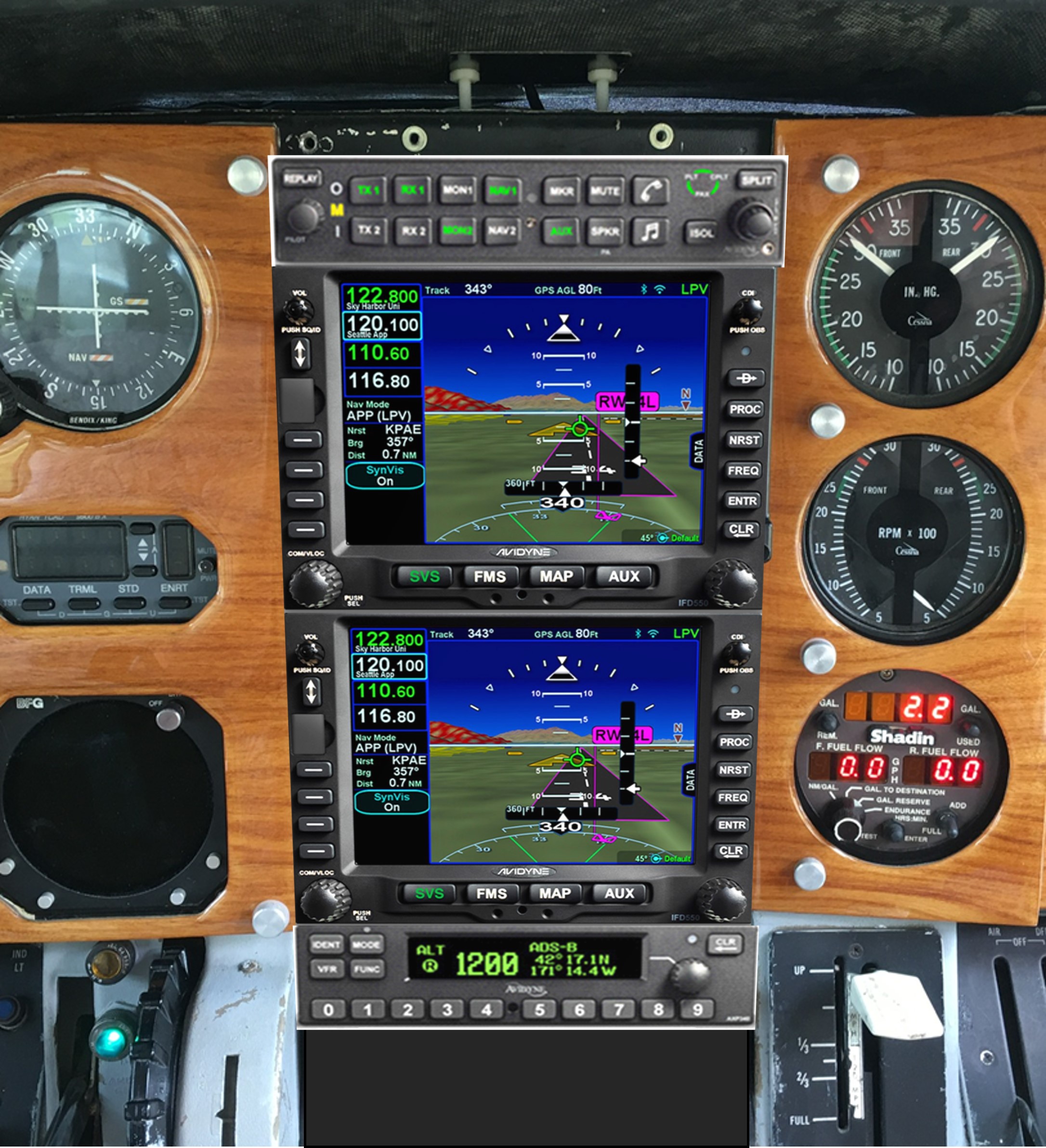 I have finally decided to bite the bullet and am about to have installed a full Avidyne suite. It is going in as we speak. Er, ah I mean, as I write. Recall, my 337 is a 1969 cream-puff Turbo RSTOL 337. Low times on everything, newish paint and interior, etc. Aka SEXY Flying commercially has become even LESS appealing than before. To Dubai business class, sure. Doing those meetings on Zoom has become more accepted, more and more. So why take commercial within reasonable* 337 range....why? *What IS reasonable 337 passenger leg/comfort range for non-pilot passengers?) I assume you ALL have opinions, and I'd like to hear them. === See photos From edge of glareshield down, the current plan is 1. Audio panel 240 Just below glareshield Matches everything else. It's special trick is to playback last radio call. Also bluetooth integration w headsets, cellphones, etc. So that's my music/podcast foreflight audio input. Also a nice clean pilot/passsenger isolate human I/O. 2. 550 IFD - Large screen GPS / NAV/COM / AHARS / TAWS/ Synthetic vision Makes navigation and synthetic vision brain dead simple 3. IFD 440 - Small screen GPS/NAV/COM/TAWS In case 550 above goes dark When integrated becomes input system for 550 4. Skytrax 200 Mode S Transponder Mode S extended squitter output Dual mode 978 and 1090 ads b in Integrates with TAS 5. TAS 620 Just needs to be fixed, already installed Integrates with rest of stack Catches superset of anything with a transponder - without ADS ground station 6. GDL62 XM for WEATHER only I just much prefer xm weather over ADSB My wife and I like to fly low to enjoy scenery, and/or places I routinely lose ground-based ADSB coverage And I never like to listen to radio programming. Better to download and play WHEN I want. ======= Up until now I have had a wonderful non-cert Helm X650 running Truemap w XM. All three of which are end of life, or intermittent, and non-supportable, Aka KAPUTski. So, there ya go. I 'gotta do something. I told my wife I was buying this all for HER. If I develop a brain tumor and she needs to dump the airplane, this will help sell it fast. I'm not sure she bought it. === QUESTION 1: Any reason why NOT to put audio panel BELOW both GPS/MAPS? Instead of on top? The avionics stack USUALLY has audio panel on top. Why? That is just the custom, as far as I can see. But I don't see using it that much, so better to move it down? I PREFER a moving map RIGHT UP under the glareshield Same reason you do so in a car: The map becomes part of your outside scan. Not eyes down and in to find it. QUESTION 2: Should I upgrade small 440 GPS/COM for a second 540 large screen (below the 550?) I can imagine the AHARS and synthetic on 550 all the time, and using the 440 as a 2d or following mode below Keep in mind the IFD series turns an ipad mini into an extra full screen, that integrates real time with the stack. Nice. ==== DISCUSSION WHY A. Avidyne talks to every other app and device I have always felt Garmin to be the GPS mafia. Their products do not talk to others (except foreflight, reluctantly) Garmin subscriptions are much higher Early on, I recall, an expired subscription would make your data go offline on your panel device. Pay us OR ELSE. Everything is an add on cost They seem to want to make everyone buy new boxes every few years Avidyne seems to update software and features instead. B. Avidyne user I/O seems simpler and more intuitive / clean sheet / integrated Garmin seems to be more like different windows dev groups / apps strung together. When I did a BFR using a Garmin 530, the user I/O was terrible. I can forgive anyone having to deal with FAA, but c'mon. C. Avidyne includes built-in wifi/blue tooth So it talks to IPADS and my wife can play podcasts / lectures or music. D. I MUCH prefer the broader coverage of XM over ADSB $40/mo won'tchange the way I live, for much better coverage E. Replacing KI109 CDI with KI106A - mechanical Was $1k less than the elecronic KI106B (its lines disdappear when not in use Was told the 106B needle movements were in sterps/jerky in comparison F. My avionics bay is a bowl of spaghetti By removing EVERYTHING and starting over, it shall all hang together, or surely we all hang apart./ G. Going with ONE manufacturer assures current and future compatibility H. The L3 Lynch 2500 I spent $5k installed just a few years back already no longer supported. A good friend made me an offer on the new L3 transponder device, but L3 is a BIG defense company doing other things, and couild drop the line without batting an eyelash. The fact that my last L3 product no longer supported..... PASS. Also, my TAS 620 already installed and integrates with the Avidyne stack, and already interrogates, so why redo it all? I. I had my Navomatic 400 autopilot gone through this year. This stack will provide GPSS steering, but we don't think vertical guidance. Given how little I have used the autopilot in the past 25 years, that's no big deal. J. The arguments AGAINST a second large screen are The money could go toward some fancy MFD or engine monitoring system The large screen 550 I can see using in AHARS on takeoff and landing, and 2D enroute. So a second large 2D screen not so important. Also, the IFD 100 wifi app on a Ipad mini is also going to sing with the suite === Okay, let's roll!