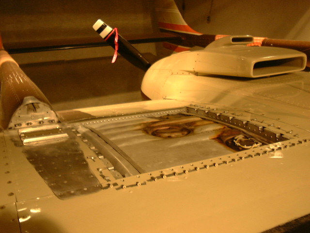 This is another shot of the right inboard tank with the top cover removed... you can see where the fuel had been leaking from the middle and aft inspection ports.