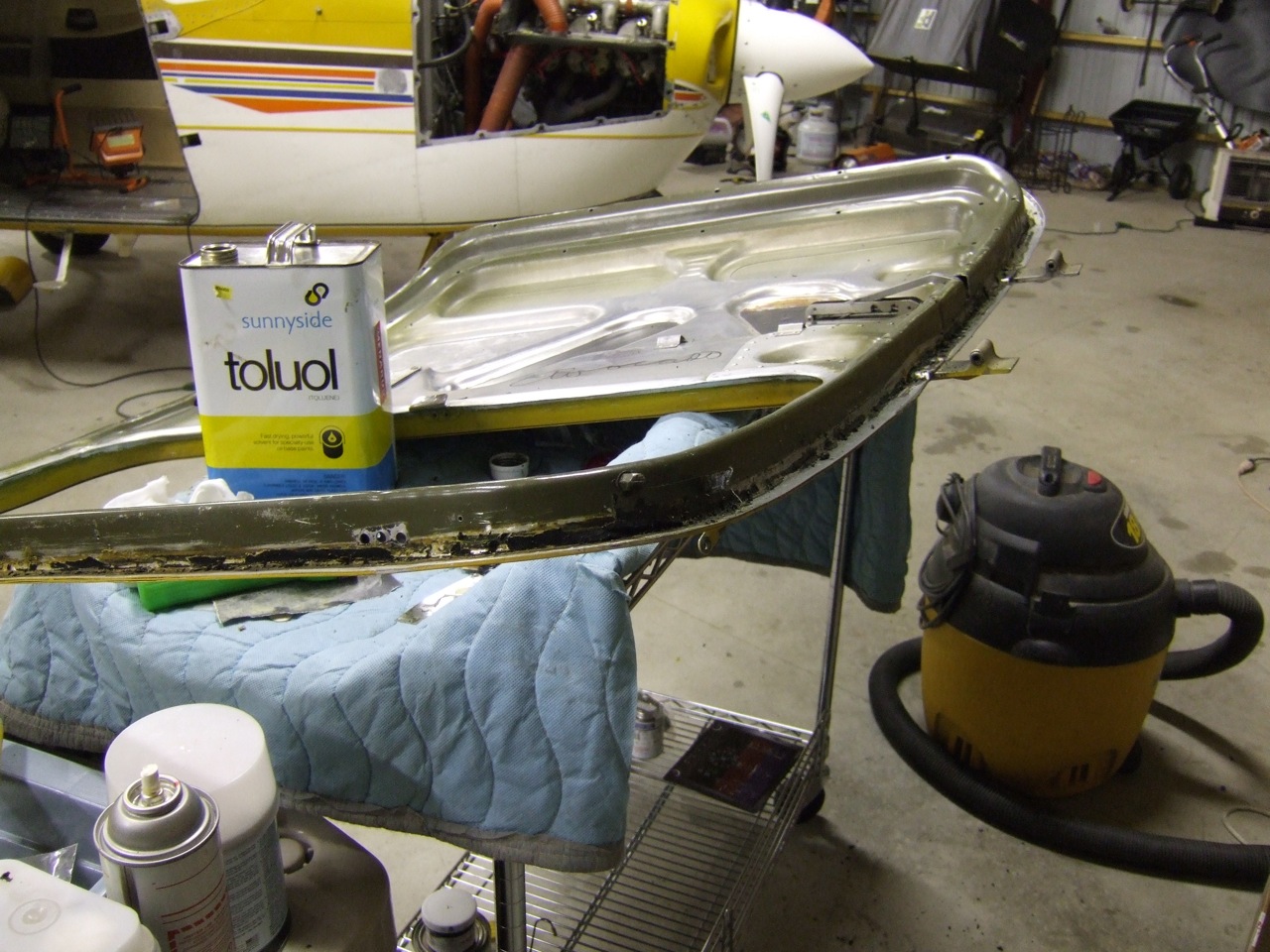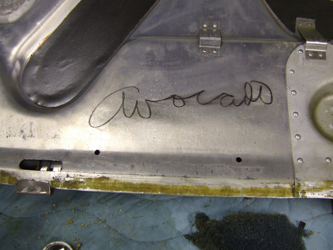 Hours and hours of cleaning off old seals and rubber. Another "note" written on the door from Cessna, it says "avocado" and we assume that was referring to the elegant green interior that was Cessna original.