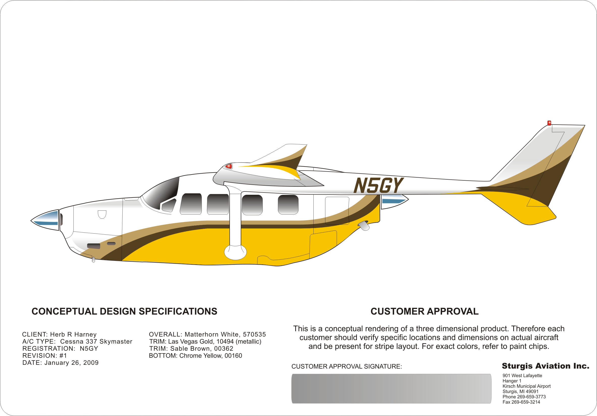 I agree with Todd, I prefer the one on the right as well. BTW, can you put those three bladed props on a T337G??? Can you heat the front one??? How do they stand up to stone chips, and other impact damage compared to Aluminum?? Just curious. FWIW, I kind of like the current paint scheme on your plane as well, more of a classic look to my eye....better match for the interior too. Can't loose either way though.
