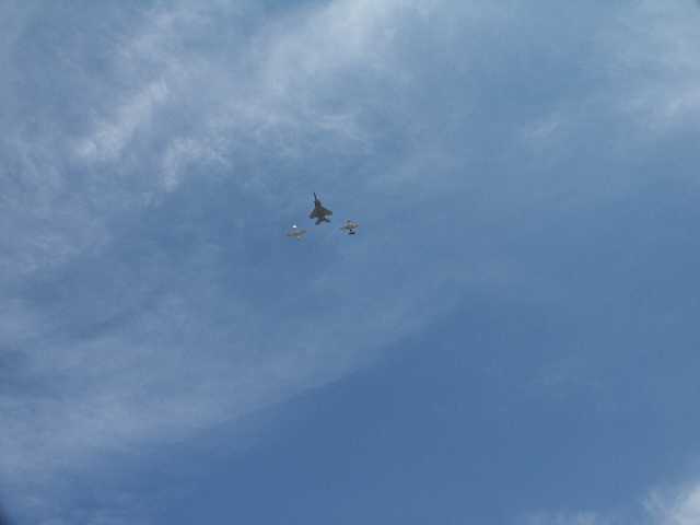 This is an F15 (I think) and 2 P-51's doing a little formation work on Sunday.
