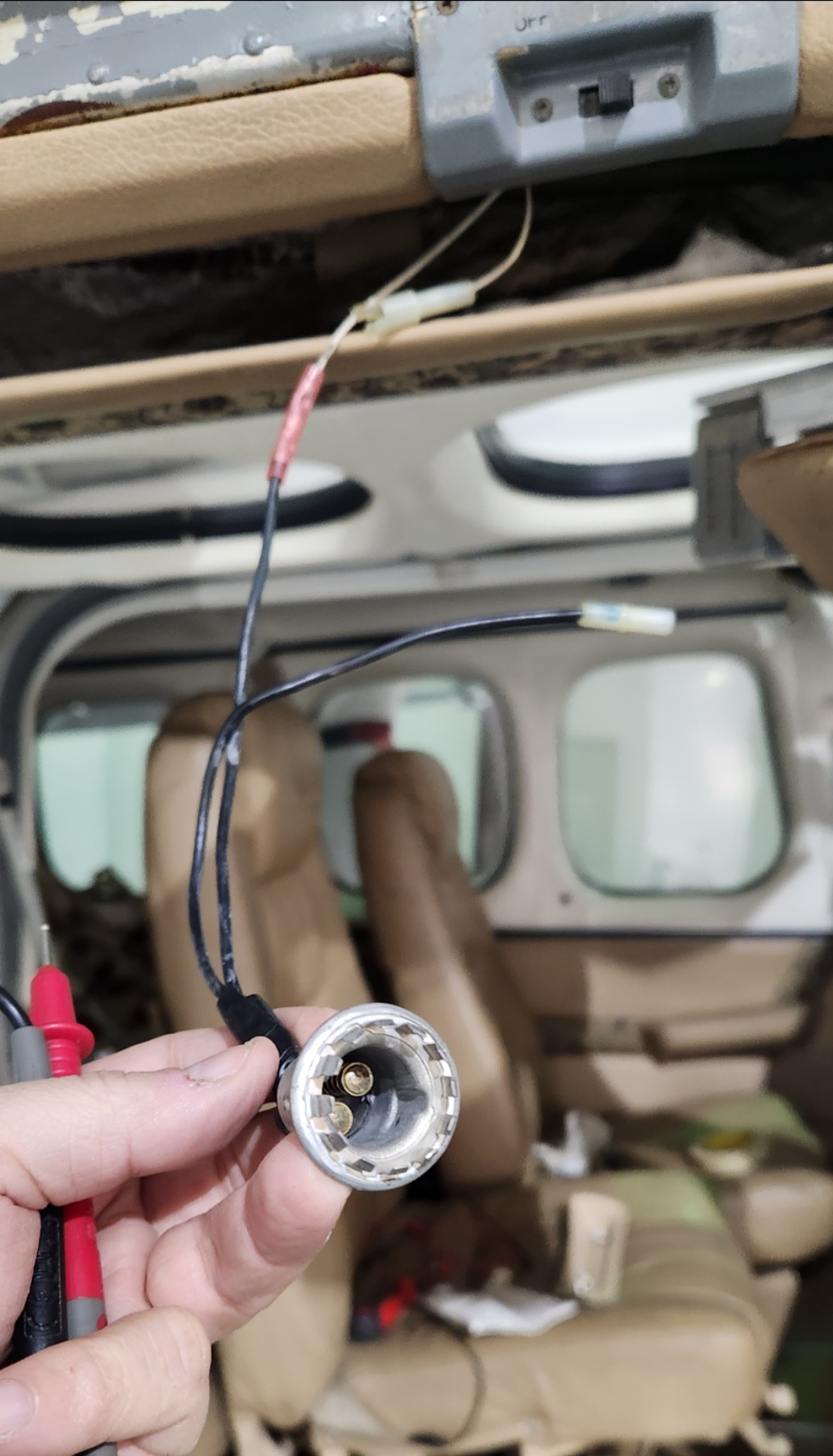 You have purchased a very nice-looking plane! I'm anxious to see some more pictures. I have a 1976 FT337GP (the French equivalent of a P337G). I'd be happy to help you in any way I can! I am dealing with a courtesy light issue right now. I purchased the LED replacement bulb last week. My current issue is - someone cut the wires at the door frame / window frame. Would you mind snapping a picture of how your courtesy light wiring gets from the fuselage to the upper door for me? Thanks in advance! Rick |