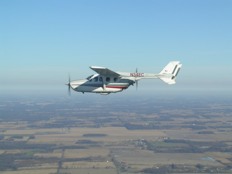A look at N34EC (Jerry DeSantis) taken from N712JF Sunday December 10 after having a wonderful breakfast at JXN (Jackson, MI). 3000' ASL, flying 285 degrees taken with a Nikon digital.