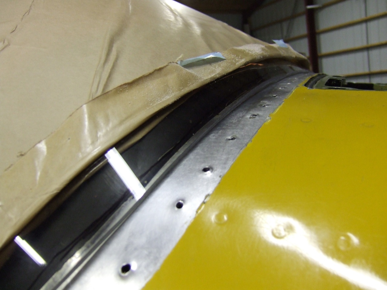 We have a new windshield in place and mounted. Still need the center post (would be nice to leave this out but I know I can't) mounted, that will come next week. After hearing all the horror stories of installing these Skymaster windows I was really waiting to see how things would go. As stated in the above message it took about 2 hours to fit and trim the W/S and the next day we installed it. We spent a good 4 - 5 hours getting all the goods fastened back down and a big part of that was clean up. The PRC (ProSeal) is a little tedious to clean up but it's done. I actually spent another 2 or 3 hours the next day doing a final clean up of all the adhesive. It really looks nice. Because of the cold weather the PRC is slow setting so it provides plenty of time to work it. Started on the side windows and had to make some decisions on those. Because the model I have (337C) there are rubber channels that wrap around the fixed outer side windows (all except the entry door window). Re-installing these in the channel on the fuselage was a bugger. The new channel may have been a little thicker but the windows were super tight in place. I will leave them dry with just the rubber channel and after the new paint is applied a bead of ProSeal will be applied to the outside of each window to seal them from the elements. This was confirmed with the paint shop and will be the best option because the aircraft is being painted directly after the interior is completed. I finished the entry door window and all I can say is that it is a good thing this is my aircraft. You couldn't pay me enough to do this for a living. Wow, that was a pain. Anyone changed the glass on one of those lately? It is a split frame (see picture below) and there are like 6 rivets that hold it together. Well I spent 4 hours removing the old window, 4 or 5 hours cleaning up the frame from all the old putty and whatever else Cessna used on it. Then Larry and I worked together installing the new window. That was about another 3 hours after cleaning up the PRC. I still need to do a little more fill and clean on it. Major time for this stuff. Driving back and forth every night is getting the best of me but hanging in there. Today we changed the main gear hoses and the springs. Bought the stuff from Cessna through Yingling. Ouch that stuff is spendy. We will be changing the nose gear hosed too but that won't hold up the interior work so it can wait. The right wing fuel tank bays are all closed back up and the wing support has been moved to the port side for fuel bay inspection before paint. I figured that now is the best time to look. I don't want to have to remove all those screws after the new paint is on. Had five screws on the aux tank that stripped on me while trying to remove them. First time these screws have been exercised since 1968. Get the drill and drill off the heads, remove the panel and then use an easy out on the screws to remove them. Aux tank looks good. I will change the level sending unit gasket and be done. Still have to take off the main fuel bay. Still have engine mounts on the rear, spin on oil filter adaptors, main tires, wing tip strobes, tail strobe, oil leak front engine, but this is all non-hold up the interior stuff. Still it takes time and lots of it. Talk to you soon.
