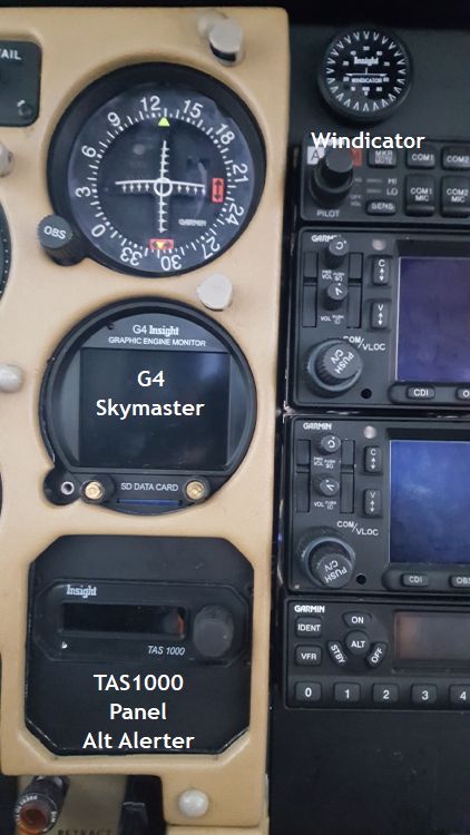 Dang, it! I dropped my "G" off at Center Line Aero (got to LUV that name!) near Pt. Lavaca, TX, yesterday for its first annual under my ownership. It is going to be a bit with the work to be done. The biggies are the Insight G4T Skymaster and their TAS-1000. They will also put in an Aernox oxygen cylinder. The avionics shop will install a 400 Hz inverter to slave the Insight Strike Finder to heading as well as the TAS-1000. The Sandel EHSI will be moved from the autopilot inverter to this standalone unit.
