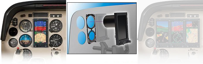 At this year's Fly-In Shoot-out Debate, the topic was panel-mount vs. hand-held GPS (and here we mean GPS with optional terrain and weather). But there may be something in-between: Aspen Avionics' new Evolution display (below left). It's easy to install because it replaces the two center instruments of the "6-pack" (below center). And it can be upgraded further (below right) by replacing more of the 6-pack instruments. In addition to easy (read: inexpensive) installation, without having to re-design and re-wire the whole panel, Aspen touts a "breakthrough price" for the instrument.
