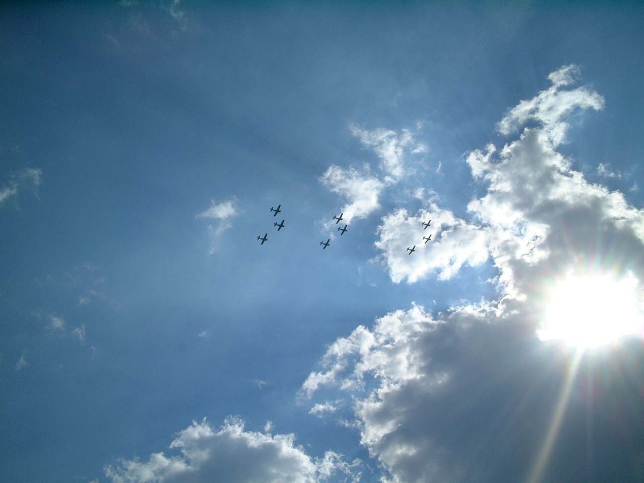 This is an F15 (I think) and 2 P-51's doing a little formation work on Sunday.