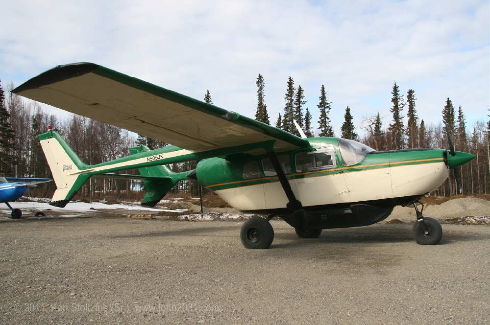 Just like everything else done to it, the wheels and tires and fork were all done on 337s in the nineties here in Alaska. I only bought 505JK this past spring, but I've been around it for decades. Steve, the longest owner, kept 505JK at 3AK4 which is a sea level 1860' gravel strip. And he pretty much only did beach landings as I recall, I don't remember him going to town in it, just what normal folks would think of as off airport.
