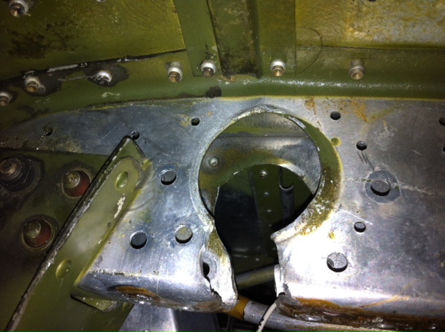 Attached are photos of the repair, one with bolts removed from doubler and one with doubler removed from hat section showing the damage to the spar, presumably cut out.