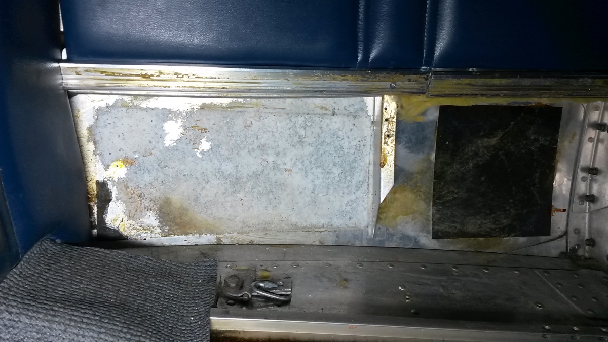 Removing corroded black vibration dampening pads is easy. If you tap the surface of them and they sound hollow, there's corrosion behind them. Also check the outside of the airplane, especially near any penetrations or near lapped sheets for signs of corrosion. What appears to be a small area of corrosion on the outside may be an extensive area on the inside.