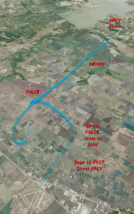 I did a very short flight Friday in LIFR to go work with a guy on a High-Performance endorsement. KVCT-KPKV is a short 17nm flight that requires a climb from SL to 3K, a course reversal, and then the LPV approach. The 400A flew it smoothly and to perfection. I attached the 3D View of my track and the approach plate.