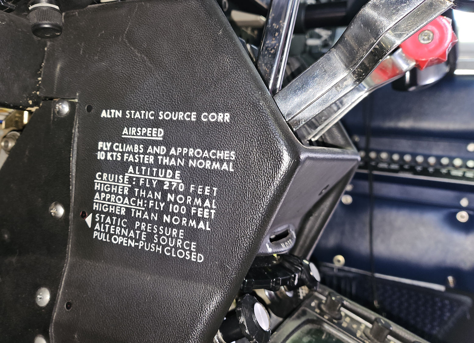 Recently back in the air 337G S/N 1807 after some major works over a few years and now doing the shakedown flights. I do have an wing heavy issue that I put in a separate post, but also have a question on pitot static systems and indications. All new pitot staic hoses installed everywhere during the rebuild including new static bowls and alternate static valve and all tested and no leaks anywhere, but on check flights, the aircraft seems slow, indication 132 knots at 2000 feet with 24/24 set. Just as a trial, i pulled the alternate static valve and the altitude indication increased by 250 feet and the airspeed went to 141 knots indicated. I am surprised at the difference in indications and am wondering if others know of differences in indications with alternate static on versus off, or has anyone got any clues as to why I may actually have a higher static pressure with the valve in normal position. Any clues would be greatly appreciated. regards Rob |