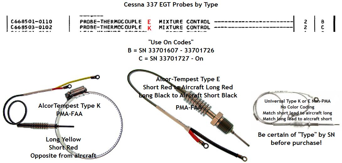 In order to understand why it will work, I asked my mechanic at Center Line Aero (PKV) and very quickly got squared away on EGT probes. This is specifically Alcor style (Cessna, Alcor, Alcor-Tempest and generic) E & K probes. Almost all other EGT manufacturers use proprietary leads.